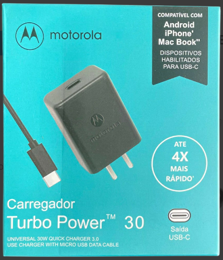 Cargador Motorola con cable conector «C» 30W carga rápida.