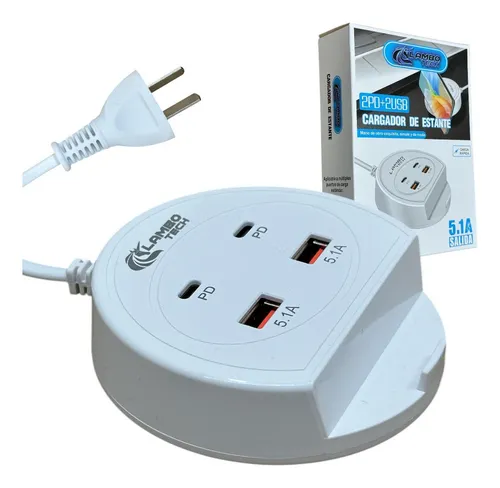 Cargador para celular (carga rápida) 2 Puertos USB 5.1a + 2 USB Tipo C