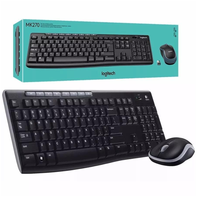 Teclado y Mouse Logitech MK270 color negro con pila incluida